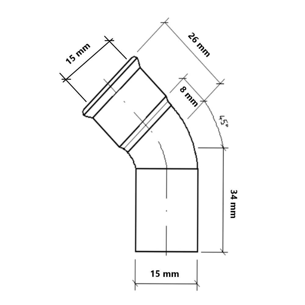 Curva 45° a pressare gas per tubo rame MF Ø15mm