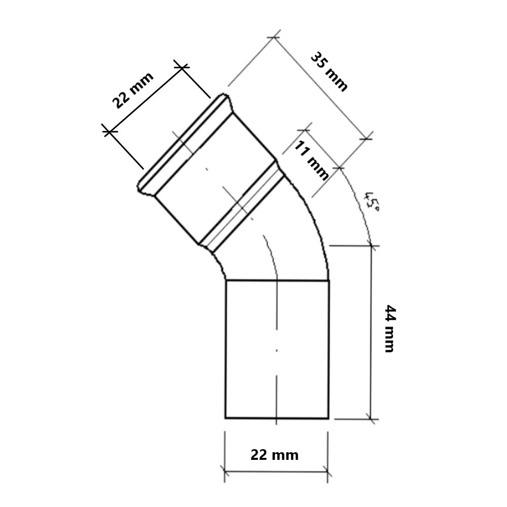 Curva 45° a pressare gas per tubo rame MF Ø22mm