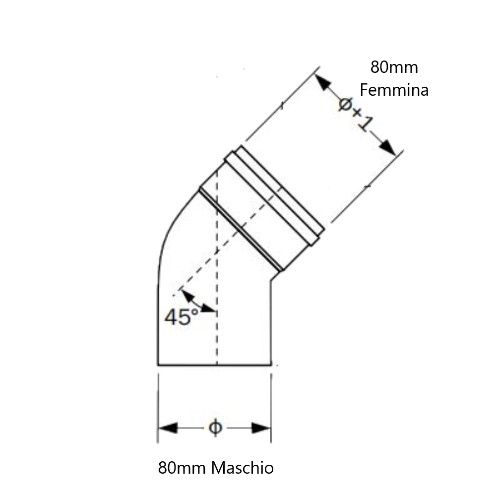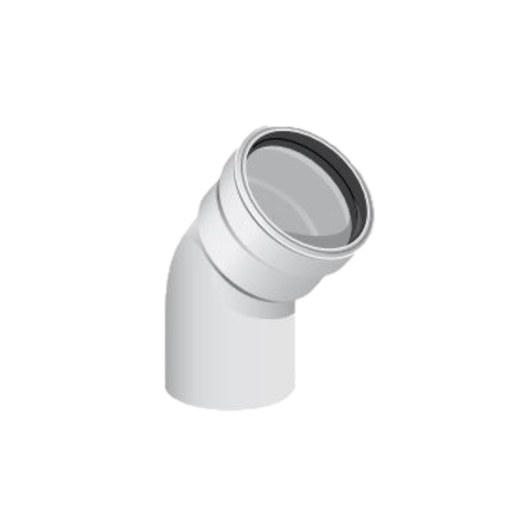 Semicurva 45° in polipropilene, plastica, di colore bianco per l’installazione di condotti su caldaie a condensazione. Questa tubazione garantisce un’alta resistenza alla corrosione delle condense acide dei fumi. Inoltre garantisce tenuta alla pressione ed impermeabilità alle condense, un’estrema facilità di installazione anche in presenza di condotti fumari già esistenti e con andamento irregolare e, tra l’altro, la possibilità di tagliare “su misura” la tubazione direttamente in fase di posa in opera. La giunzione tra gli elementi avviene attraverso un sicuro sistema a innesto, grazie alla guarnizione presente nel bicchiere. Pertanto l’innesto deve avvenire con il lato femmina (bicchiere) rivolto verso l’alto, onde evitare la fuoriuscita della condensa. Infine, questo tubo, può essere utilizzato anche per l’evacuazione dei prodotti di ventilazione.