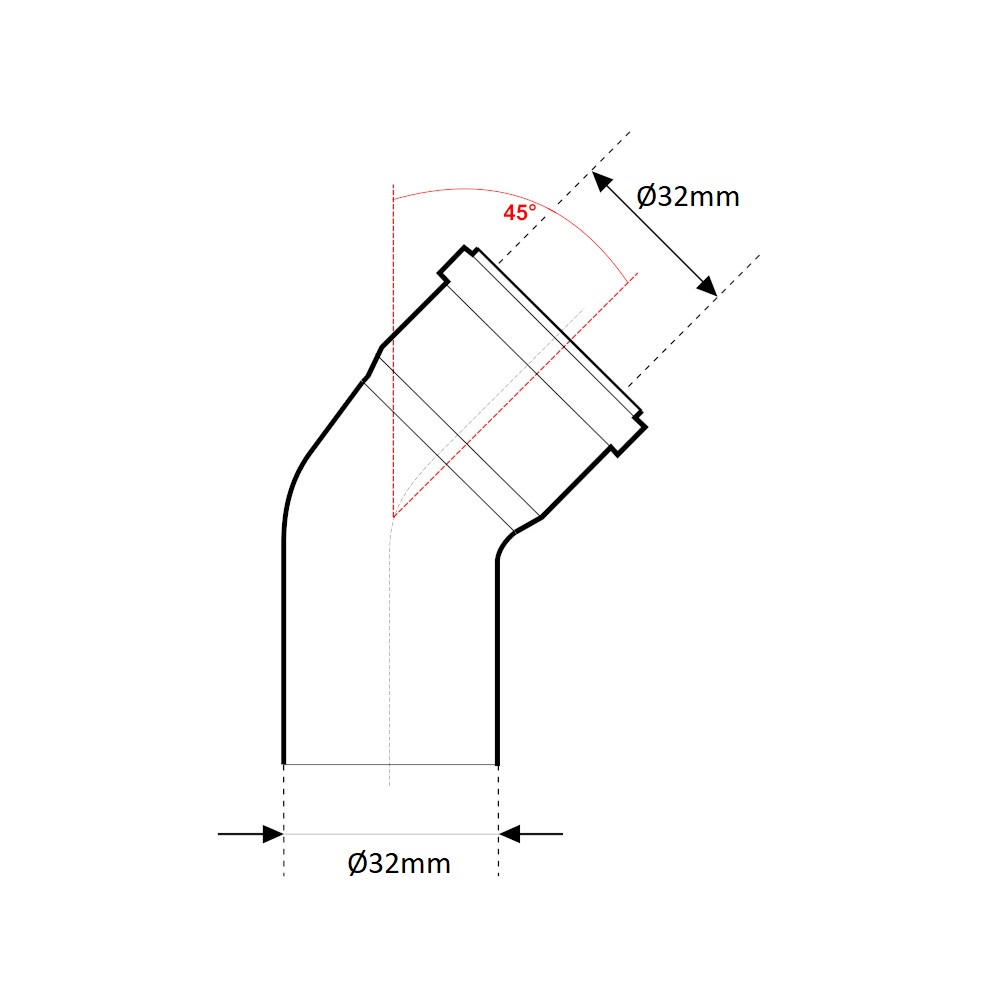 La curva a gomito Ultra Silent, è un raccordo utilizzato nella realizzazione di sistemi di scarico di acque reflue, impianti di irrigazione e di riscaldamento. Il raccordo è utilizzato per collegare due tubazioni ed ottenere un’angolazione di 45°. La curva è idonea per essere installata, in ambienti in cui è richiesta conformità in materia di isolamento acustico. Può essere applicata in contesti residenziali, edifici commerciali e professionali. Inoltre il raccordo con sistema ultra silent, è adatto per la realizzazione di impianti di ventilazione e aspirazione polveri. Il sistema ultra silent, è compatibile alla connessione con materiali plastici in PP/PE-HD/PVC. La curva presenta un attacco maschio con diametro Ø32mm e un attacco femmina con diametro Ø32mm