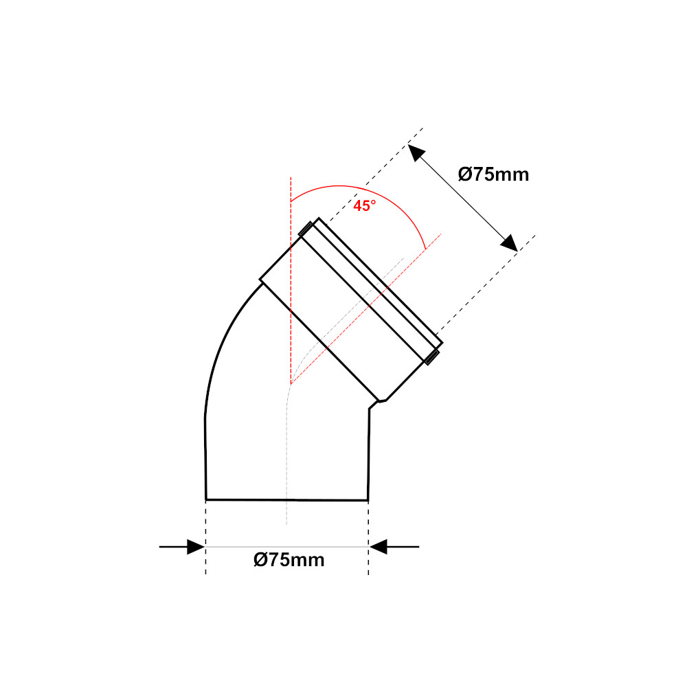 Il sistema in polipropilene grigio ad innesto è utilizzato per la realizzazione di impianti di scarico e trattamento delle acque reflue, impianti di ventilazione e di drenaggio. Il raccordo angolato permette di ottenere un’angolazione di 45°. La curva ha un attacco maschio con diametro Ø75mm da un lato, e un attacco femmina con diametro Ø75mm dall’altro. Il raccordo utilizza il sistema a bicchiere con giunzione idraulica ad innesto. Quest’ultima garantisce una solida tenuta senza perdite. Inoltre assicura lo spazio necessario, per l’eventuali dilatazioni dell’impianto, dovute alle variazioni della temperatura.