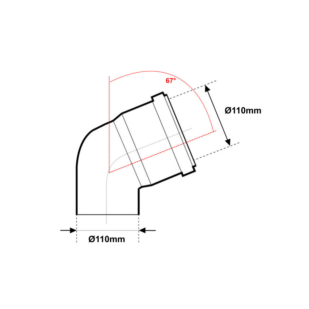 La curva presenta un attacco maschio ed un attacco femmina, entrambi da diametro Ø110mm. Il raccordo ad angolo, consente di ottenere un’angolazione di 67°. La curva è dotata di una guarnizione elastomerica a labbro. Il raccordo di fognatura è realizzato utilizzando solo materie  prima di alta qualità. Difatti è realizzato in Pvc rigido, un materiale di alta qualità, noto per la sua resistenza alla corrosione. Risulta inattaccabile dalle incrostazioni calcaree, con esiti migliori per la purezza dell’acqua. I sistemi per la realizzazione di fognature hanno altissime qualità rispetto ad altre tipologie di tubazioni presenti sul mercato. Infine, la versatilità d’impiego, grazie alla sua alta resistenza alla gran parte di agenti chimici, è inattaccabile da muffe ed alghe, roditori ed insetti, rendendo queste tubazioni per fognatura idonee a tutte le situazioni che prevedono la costruzione di condotte di scarico interrate ed esterne.