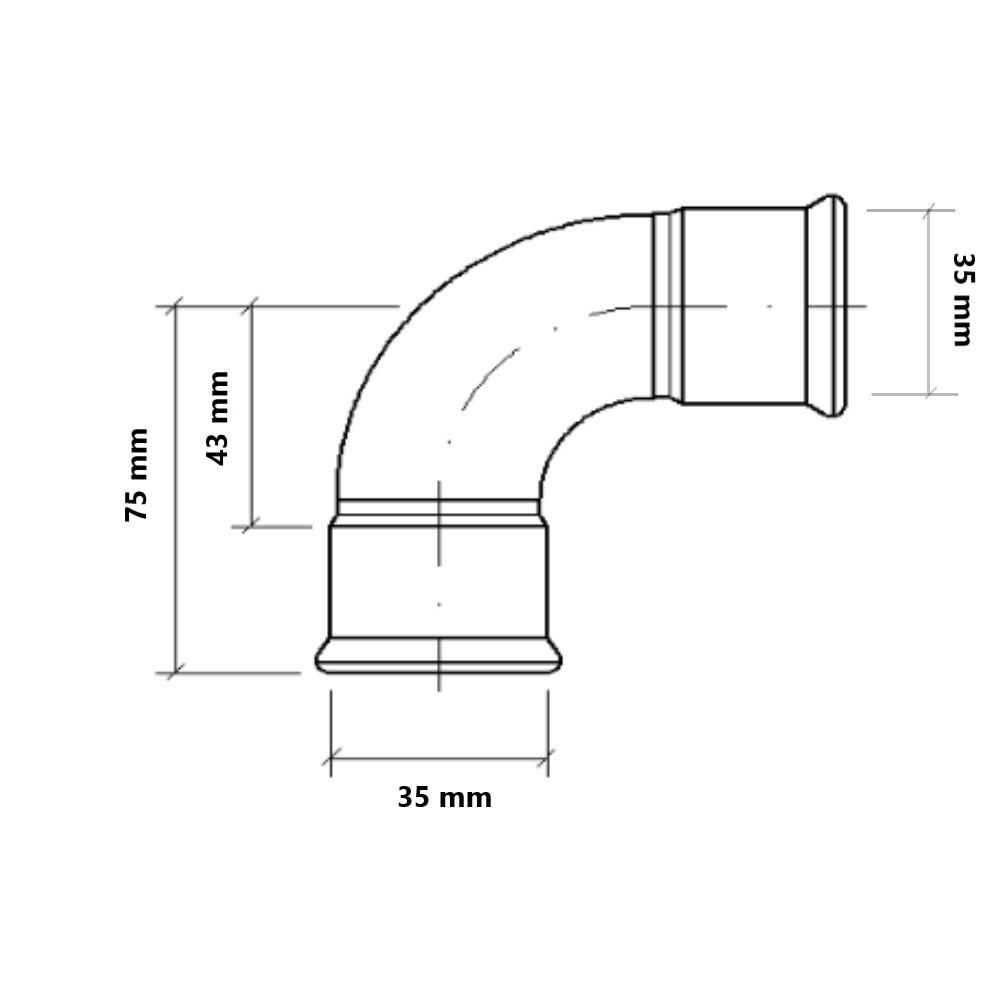 Curva 90° a pressare gas per tubo rame FF Ø35mm