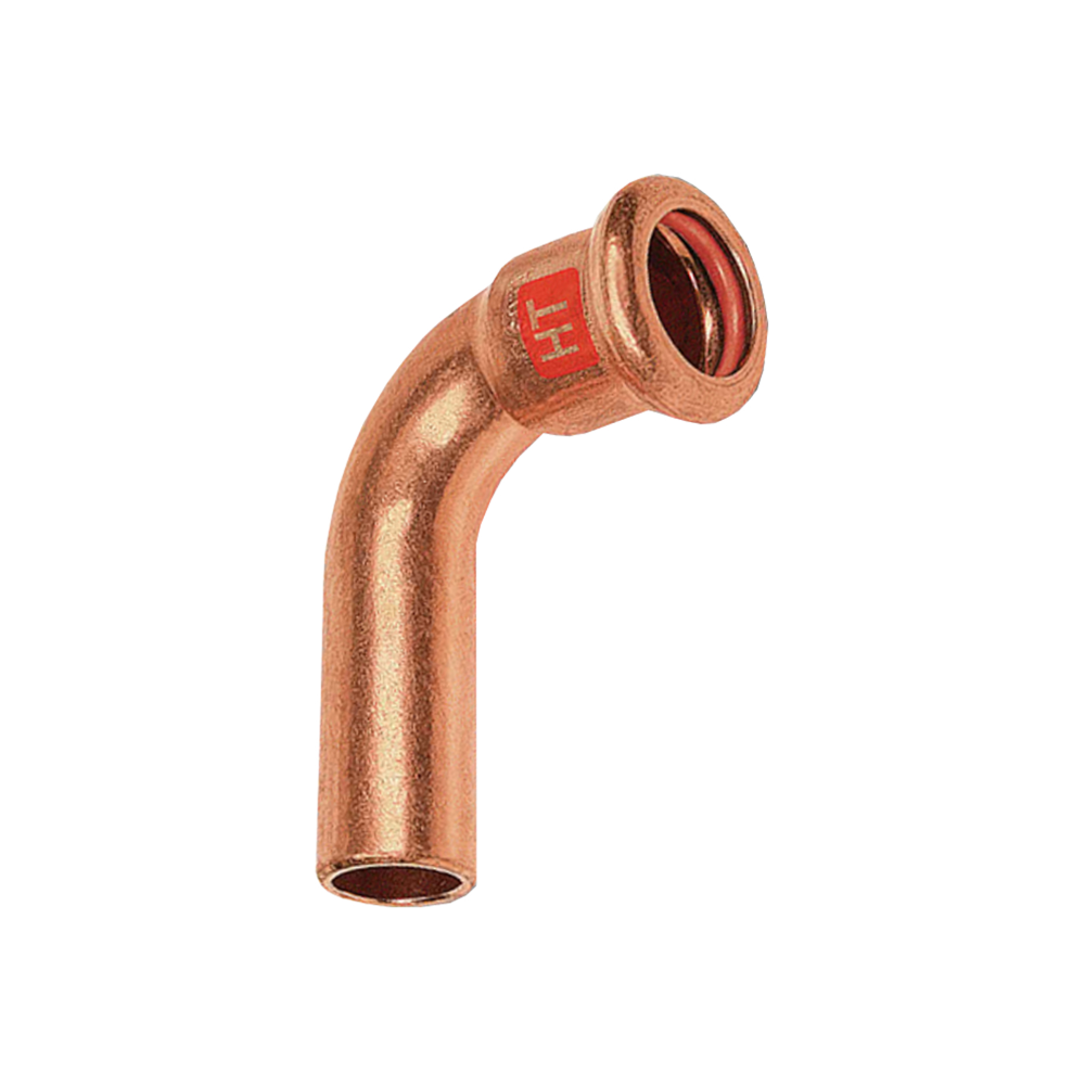 La curva in rame a pressare è utilizzata per raccordare tubazioni in rame e acciaio inox. Il raccordo presenta una curva 90° e diametro MF 54mm HT. La pressatura assicura collegamenti duraturi e di alta resistenza. In fase di collaudo, le giunzioni pressate, eviteranno il rischio di eventuali perdite, garantendo una maggiore sicurezza durante il lavoro di assemblaggio. Il sistema della Sanha garantisce la perdita in caso di mancata pressatura, questo plus lo rende unico nel suo genere. Il manicotto a pressare con guarnizione è adatto al passaggio di acqua sia fredda che calda, da -20°C fino a 200°C.E’ ideale per applicazioni solari in quanto è resistente alla miscela di glicole, ad alta temperatura ed anche per aria compressa.