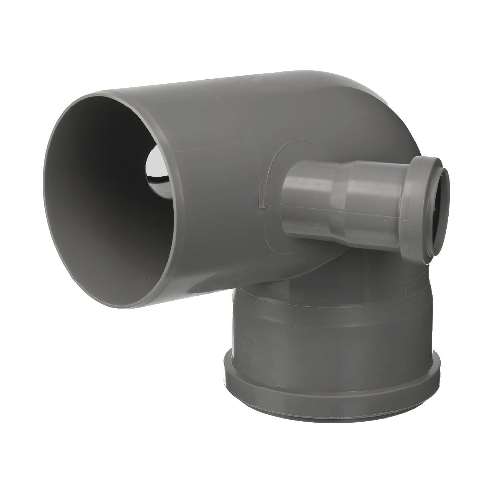 Il sistema in polipropilene grigio ad innesto è utilizzato per la realizzazione di impianti di scarico e trattamento delle acque reflue, impianti di ventilazione e di drenaggio. La curva è la soluzione per far confluire più tubature in un unico tubo. Il raccordo ad angolo è ideale per ottenere un’angolazione di 87°. Inoltre ha un attacco maschio con diametro Ø110mm, un attacco femmina con diametro Ø110mm e un attacco femmina con diametro Ø50mm. Il raccordo sfrutta il sistema a bicchiere con guarnizione idraulica, il quale sistema garantisce una solida tenuta senza perdite. In aggiunta questo sistema previene le dilatazioni dovute alle variazioni della temperatura.