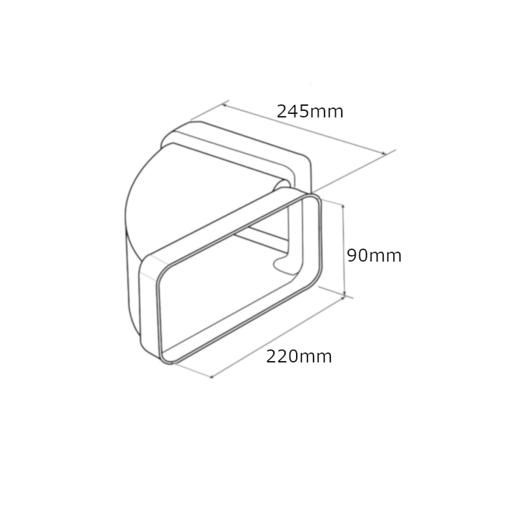 La curva è realizzata in ABS, ovvero un materiale termoplastico, il quale vanta un’elevata resistenza e una lunga durata nel tempo. Questo elemento ha una lunghezza di 245mm, una larghezza di 220mm ed un’altezza di 90mm. Inoltre consente di ottenere un’angolazione di 90°. Per ulteriori informazioni, consultare il documento in allegato.