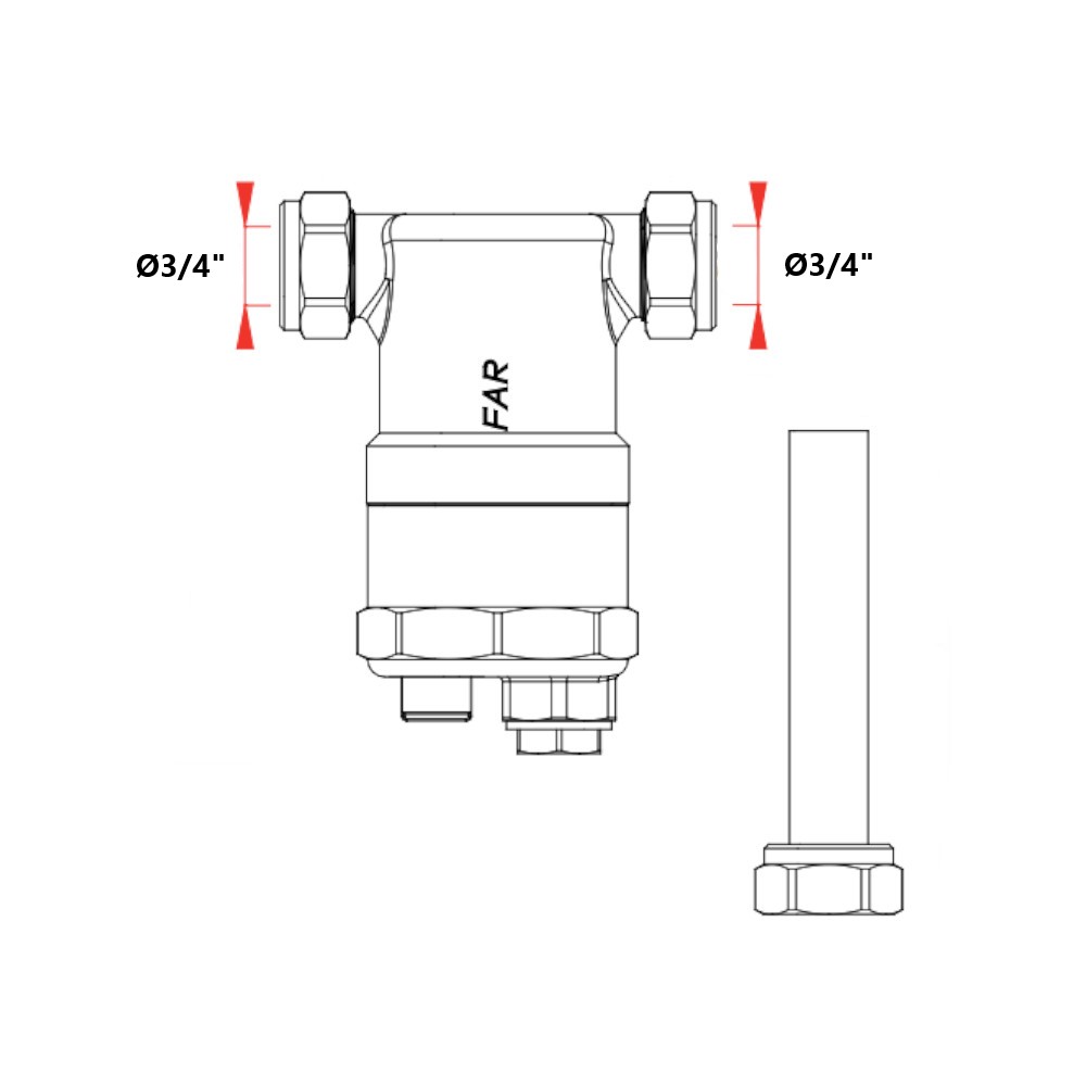 Attacchi alle tubazioni Ø 3/4″ MM con inserto testa piana/eurokonus. Corpo in ottone CB753S. Finitura cromata con cartuccia e magnete estraibili. Pressione nominale 10 bar e temperatura massima di esercizio 110°C. Nr. 2 kit di tenuta per tubo rame Ø 18 mm attacco 3/4″ eurokonus. Kit di allacciamento Ø 18 mm (tubo rame lunghezza 100mm – calotta 3/4″ – guarnizione di tenuta in EPDM per sede piana). Brevettato. La gamma FAR è sinonimo di garanzia Made in Italy dei suoi prodotti.