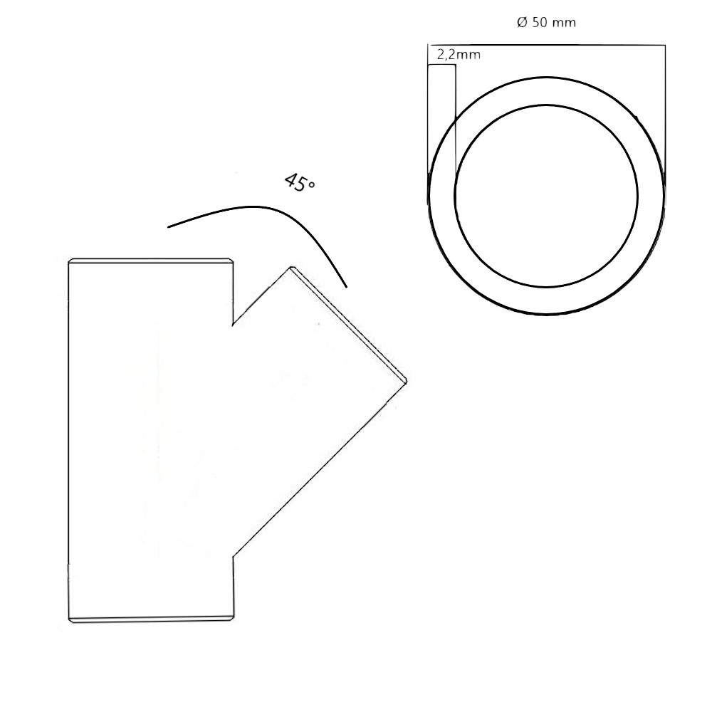La derivazione ad Y con un angolo da 45° è realizzato con materiale in PVC ha tutti gli attacchi femmina, il suo Ø è di 50 mm, mentre lo spessore della deviazione è di 2,2 mm ed è di colore blu generalmente impiegato per aspirazione centralizzata. La braga viene solitamente utilizzata in ambito civile per la realizzazione di impianti di aspirazione residenziale di tipo tradizionale, per singolo operatore. La deviazione per impianto di aspirazione centralizzata, è appositamente costruita per essere installata tra le pareti di casa e a pavimento, sottotraccia, o anche a controsoffitto, trasportano il 100% dello sporco, come polveri e allergeni dalla zona abitativa alla centrale aspirante.