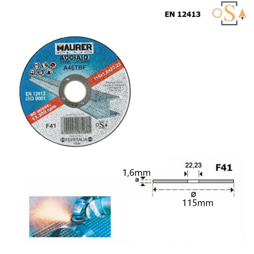 Disco Taglio Acciaio centro piano 115×1,6mm Maurer Plus