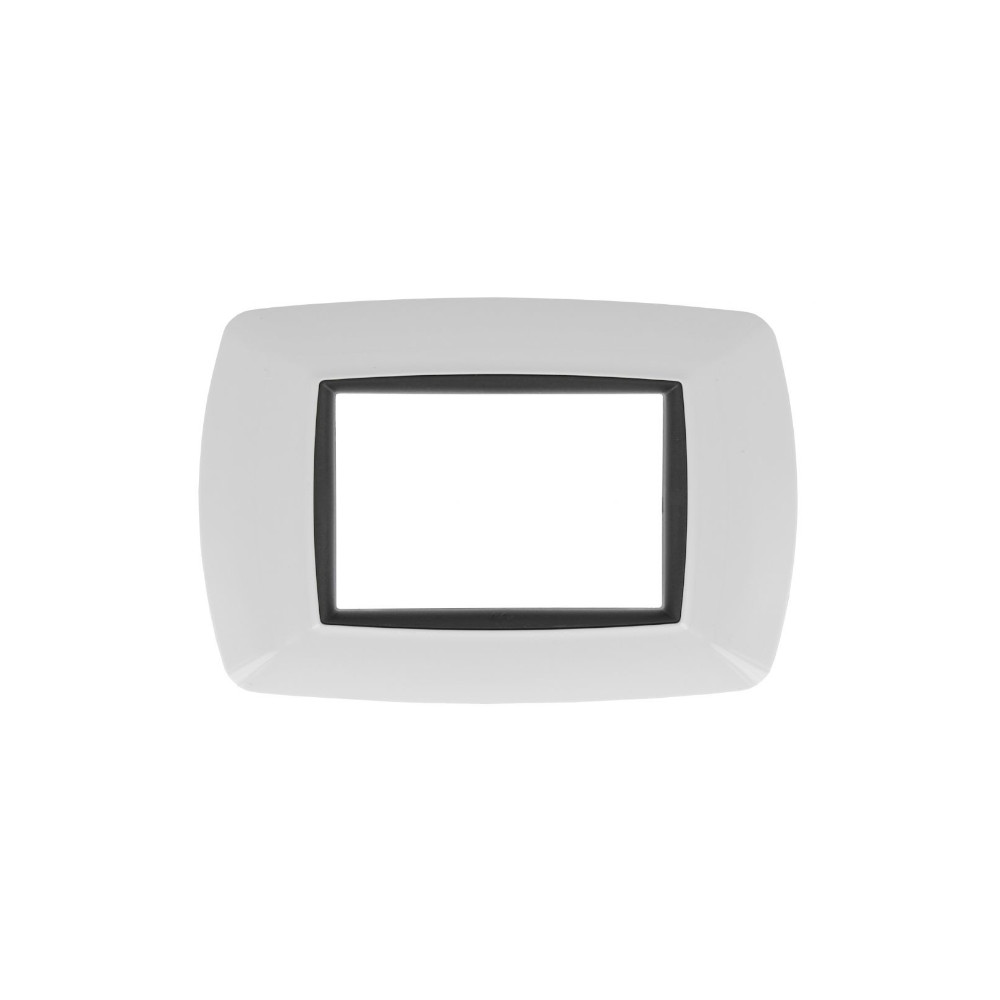 Placca 3 moduli bianco compatibile con la serie Bticino Living. La placca o mostrina si aggancia al telaio LN4703.