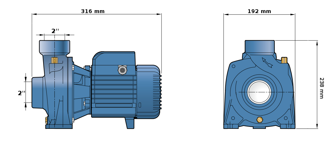 Le pompe PEDROLLO con motore da 0.75 Kw ( 1 HP) della linea HF medie portate, sono consigliate per ambiente civile ed agricolo.