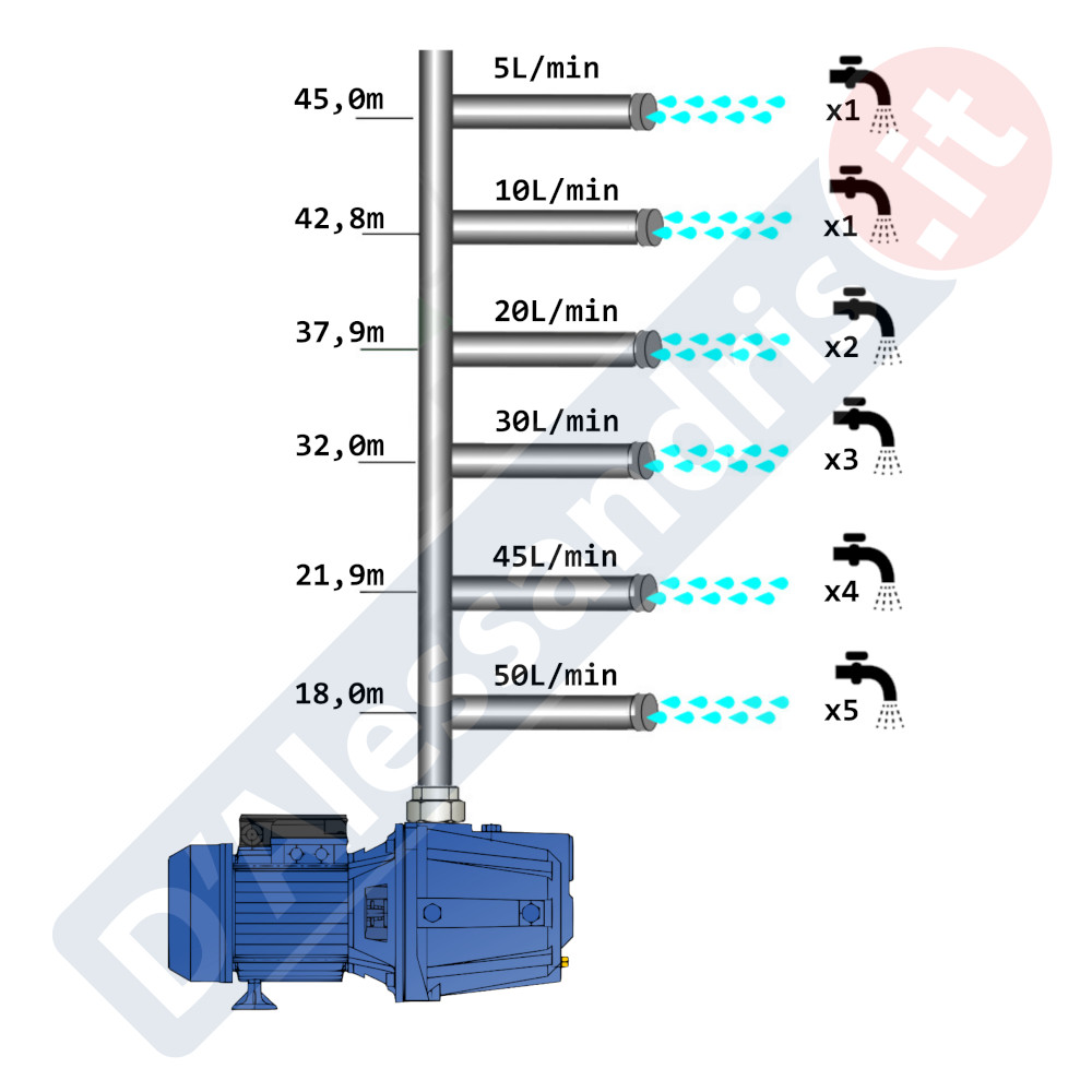 Parlando delle caratteristiche costruttive dell’elettropompa, notiamo che il motore ha la certificazione energetica IE2, garantendo un elevato risparmio energetico paragonato alla vecchia versione della pompa. In secondo luogo il corpo pompa è in ghisa verniciata, un materiale in grado di assicurare durata nel tempo. Mentre all’interno ci sono 2 motori con poli asincroni autoventilati, girante in PPE + PS rinforzato con fibre di vetro e albero in acciaio inox AISI 303. L’elettropompa deve essere installata in luoghi chiusi ben arieggiati o comunque protetti dalle intemperie in quanto la sua protezione certificata è di tipo IPX4. Per ulteriori informazioni tecniche consultare la scheda tecnica della pompa.