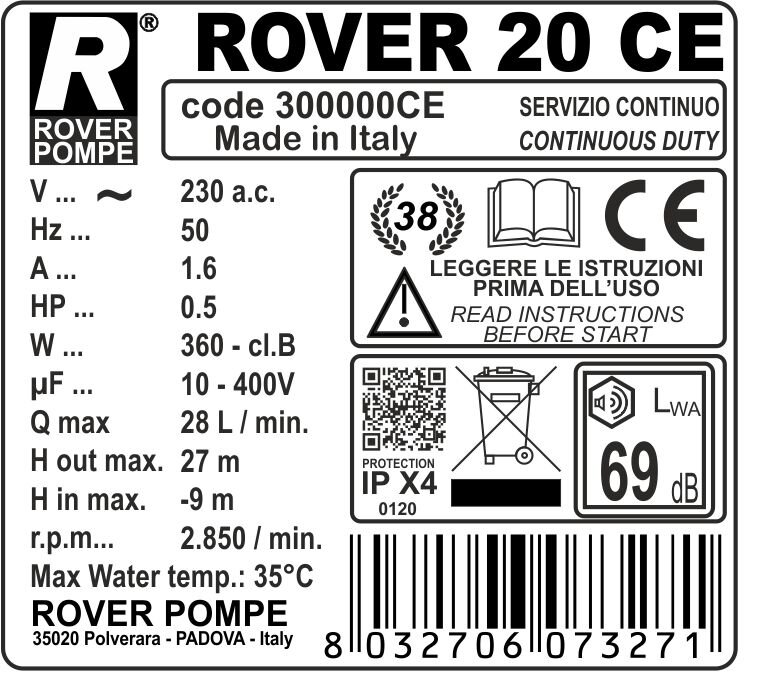 La pompa è utilizzata per travaso di liquidi chimicamente non aggressivi come acqua, vino, latte, aceto, soluzioni oleose a bassa viscosità, detergenti neutri fluidi e gasolio. È la pompa autoadescante ad anello liquido, con girante a geometria stellare, dotata di doppio senso di rotazione di serie, con motore ad alta efficienza calcolato per funzionare in servizio continuo. L’elettropompa è autoadescante ed aspira molto comodamente tramite semplice portagomma. La capacità di aspirazione è attiva su entrambi i sensi di rotazione. E’ possibile usare la pompa per travasare ogni tipo di liquido pulito di uso comune, che non deve essere aggressivo chimicamente o abrasivo. Alcuni esempi: acqua, vino, latte, aceto, soluzioni oleose a bassa viscosità, detergenti neutri fluidi, gasolio. La viscosità del liquido non deve essere maggiore a 4 cps per servizio continuo con mandata libera, e non deve essere superiore a 20 cps per servizio intermittente con mandata libera e presenza di un operatore per la sorveglianza. La normale manutenzione richiede pochi e semplici interventi, come fosse un normale elettrodomestico. Dopo l’uso, bisogna travasare acqua pulita per risciacquare le superfici interne della pompa. Il motore elettrico non necessita di manutenzione, non ci sono organi da lubrificare. La pulizia delle parti esterne va fatta con una spugna leggermente umida, per poi dopo asciugare subito con un panno.