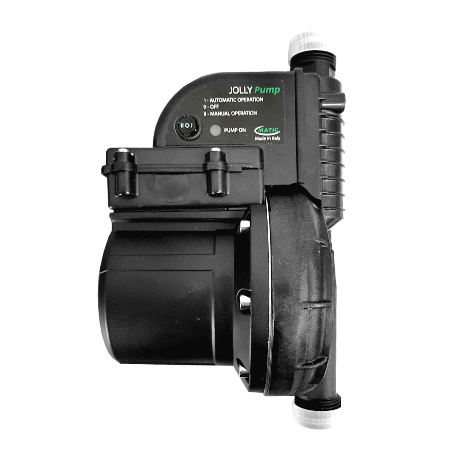 La pompa JOLLYPUMP P 12 2021 viene utilizzata per aumentare di 1,2 bar la pressione dell’acqua del vostro appartamento. Rispetto al modello precedente l’azienda MATIC ha potenziato la pompa aumentando la qualità dei materiali e rendendola molto resistente a durare nel tempo. L’alimentazione avviene tramite corrente monofase 230V a 50Hz e si accende tramite un interruttore. Il motore, raffreddato ad acqua, garantisce la silenziosità della pompa, rendendo il suo posizionamento semplice e idoneo a qualsiasi spazio interno all’appartamento o in un sotto tetto. La sua installazione è molto semplice, basta collegare al raccordo di entrata il flessibile che trasporta l’acqua con poca pressione. Una volta azionata la pompa grazie al sistema circolatore il liquido che andrà all’interno della pompa subirà un aumento di pressione pari a +1,2bar. L’acqua che uscirà dal raccordi d’uscita avrà così un alta pressione e si risolverà il problema di mancanza d’acqua nelle docce, lavastoviglie, lavandini, lavabi e altri elettrodomestici. La pompa può essere posizionata in linea con la tubazione principale di ogni singolo appartamento per aumentare la portata e la pressione senza dover necessariamente modificare l’impianto generale condominiale. All’apertura di un qualsiasi rubinetto, il naturale movimento dell’acqua nella tubazione, purchè superiore a 3 lt/ min, viene intercettato dalla valvola di flusso interna all’apparecchio, determinando la partenza del motore, garantendo un flusso costante per l’intera durata dell’utilizzo.