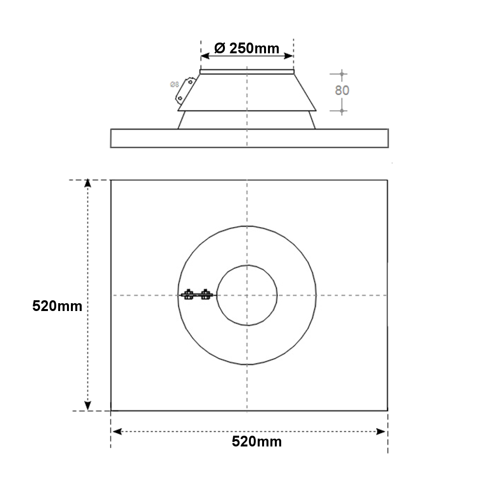 Faldale in acciaio inox 520mm x 520mm con collarino Ø 250mm, impedisce l’ingresso delle acque meteoriche all’interno della canna fumaria. Il faldale piano è adatto per isolare il sistema camino dalla possibile infiltrazione di acqua, salvaguardando l’intera canna fumaria da possibili danni e problematiche. Inoltre rappresenta la scelta ideale per la costruzione di impianti di scarico di fumi derivanti da combustione di gas metano, gasolio o legna. Il faldale ha una base forata al centro, un piccolo tubo per collegare la varia componentistica inox di quel diametro ed un collare conico che si posiziona sul modulo lineare ed ha la funzione di impedire l’ingresso delle acque meteoriche. Idoneo sia per lo scarico a secco che per lo scarico umido. Il faldale dritto ha una base quadrata da 520-520mm ed un innesto per la conduttura con diametro da 250mm. In aggiunta è realizzato in acciaio inox 304 mono parete, un materiale eccellente per i circuiti di scarico fumi. Difatti l’acciaio inossidabile è in grado di garantire un’elevata resistenza agli agenti esterni, ed è in grado di garantire un’altissima durata nel tempo. La scelta di utilizzare canne fumarie e raccordi in acciaio inox consente di ottimizzare la combustione e ridurre notevolmente sia i consumi che le sostanze inquinanti. Il faldale quadro è perciò la scelta ideale per il vostro impianto di smaltimento fumi. I faldali per canna fumaria sono disponibili in varie misure.