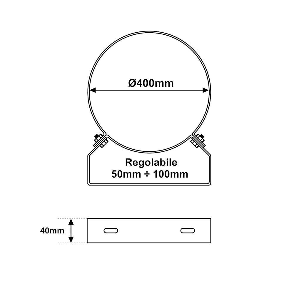 Fascetta murale regolabile INOX Ø 400mm, consente il fissaggio a muro di una conduttura. La fascetta murale è un elemento essenziale nella realizzazione di un sistema camino, difatti consente l’ancoraggio della conduttura al muro. Facendo ciò è possibile evitare che la conduttura si muova con le vibrazioni causate dalla stufa. La staffa di fissaggio è realizzata in acciaio inossidabile ed ha un diametro da 400mm, quindi compatibile con tubi dello stesso diametro. In aggiunta la fascetta è munita di una base regolabile da 50mm ad 100mm. Mentre il fissaggio a muro avviene tramite i fori presenti sulla staffa. La fascetta murale in acciaio inox è disponibile in varie misure. Bulloni e tasselli per il fissaggio a parete non inclusi con la staffa.