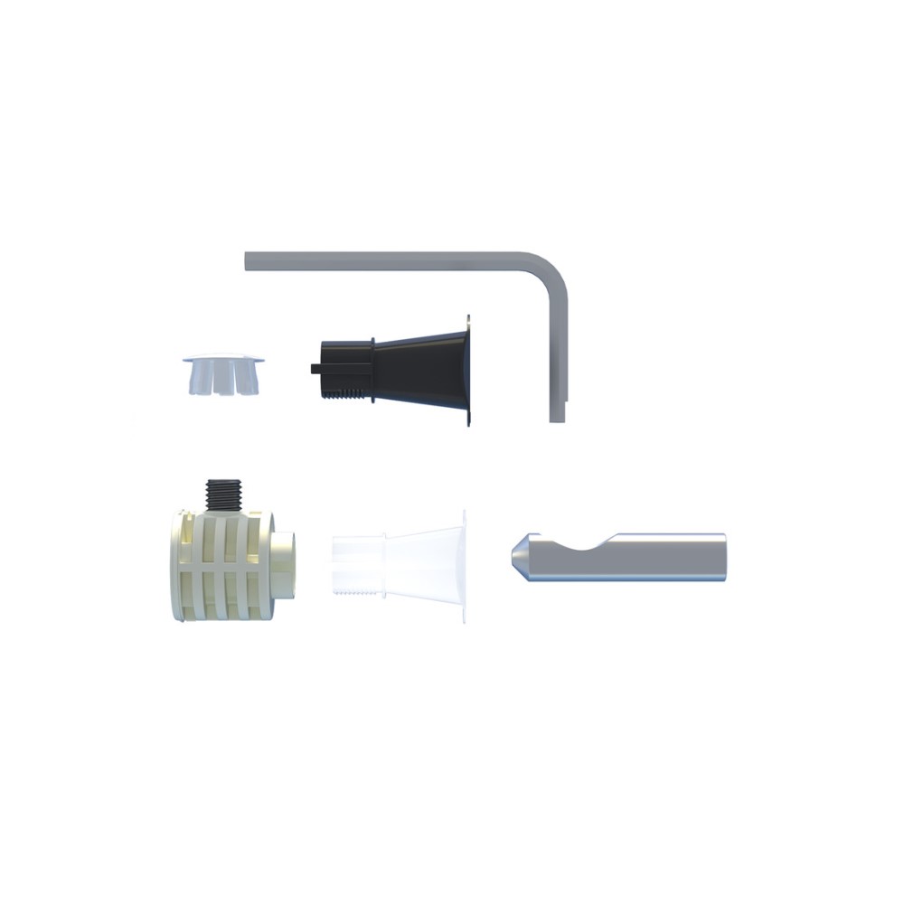 Fissaggio di WC e bidet sospesi WB 9 B LV per installazione di ceramiche con accesso laterale o da sopra. Adatto per spessori ceramica da 34 a 47 mm. Fissaggio nascosto all’interno della ceramica. Nessun contatto tra ceramica e parti in metallo. Sistema completo per una installazione veloce. Fissaggio testato a 400 kg secondo normative UNI EN 997 e UNI EN 14528. Adatto per il fissaggio di WC e Bidet sospesi mediante n.2 barre M12 opportunamente pre-installate a parete. Utile per l’utilizzo combinato ai telai per sanitari sospesi Premium, LC plus, TCS.  Kit composto da: 2 dispositivi WB9 B, 2 imbuti bianchi, 2 imbuti neri, 2 cannotti metallici M12, 2 calotte copriforo bianche, 1 chiave 50×100.