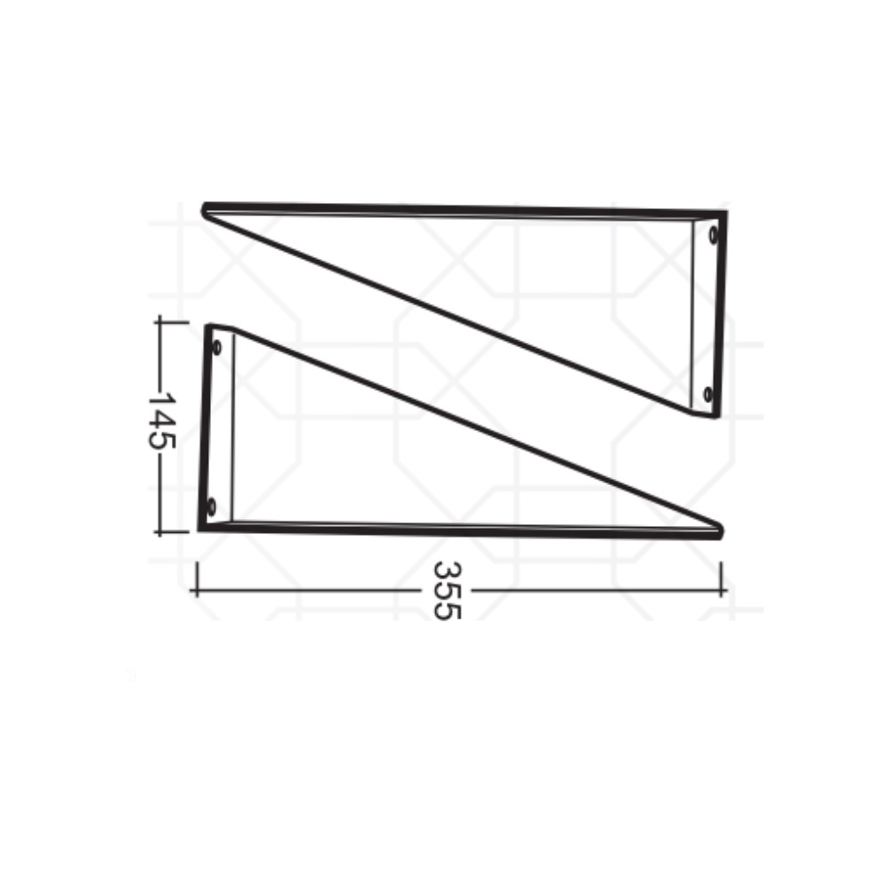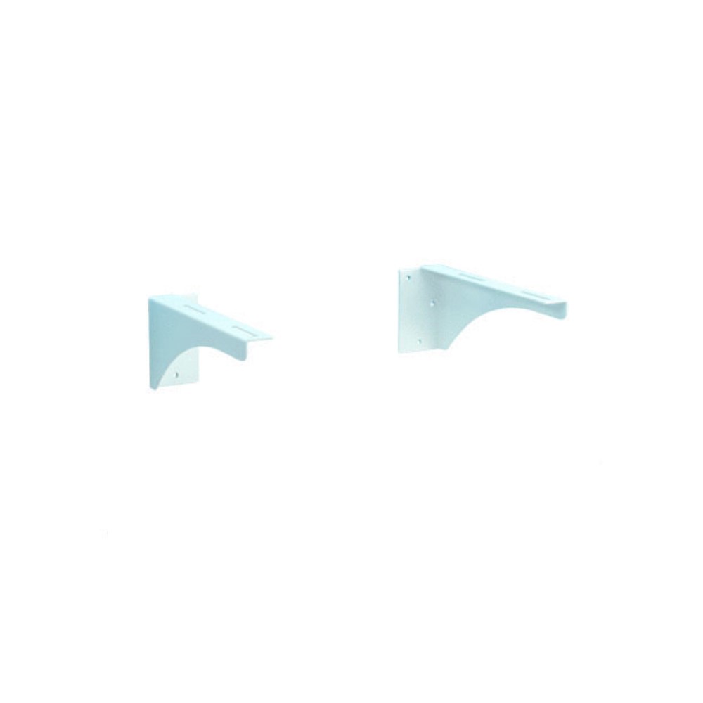 Mensole fisse per lavabo realizzate in acciaio spessore 2,5 mm, verniciatura a polvere poliestere, cotto in forno a 180°, completo di fissaggi. Colore bianco. Dimensione 145 x 355 mm.