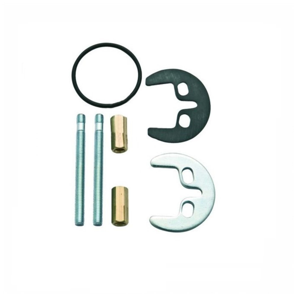Il kit fissaggio per rubinetto monocomando a 2 fori, usato su rubinetti con un unica manopola che regolare il flusso di acqua calda o fredda, viene installato sui lavabi da bagno, lavelli, miscelatori da cucina o vasche da bagno. Il Kit è usato come ricambio completo per installare un nuovo rubinetto o semplicemente reinstallare quello vecchio, questo kit di sostituzione aiuta a prevenire le perdite dovute a usurate e rondelle arrugginite. Il kit e cosi composto da: N. 2 viti acciaio zincato filettatura M6 ( diam. 6 mm) lunghezza 8 mm. N. 2 dadi in ottone filettatura M6 ( foro diam. 6 mm) lunghezza 10 mm. N. 1 piastra di fissaggio larghezza 50 mm + 1 piastra in plastica a forma di mezzaluna. N. 1 guarnizione o-ring esterno Ø 45 mm spessore 1.7 mm.