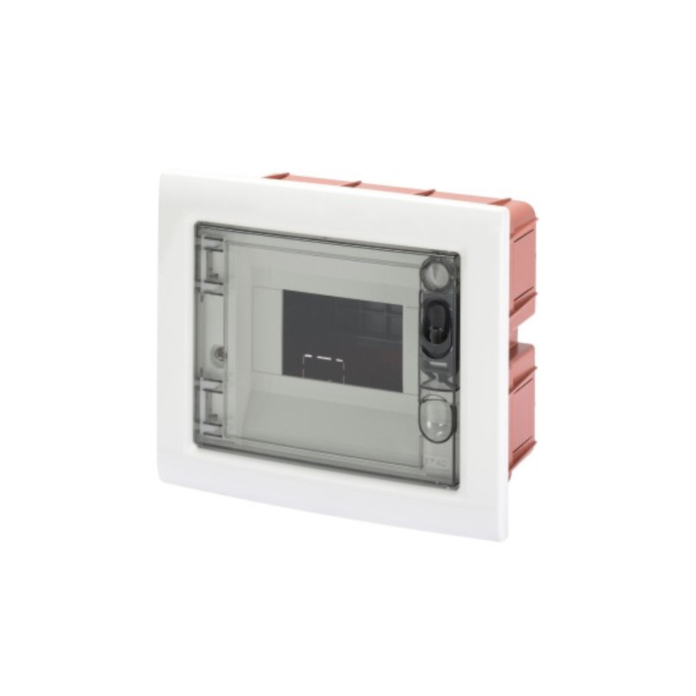 Centralino elettrico da incasso 6 moduli IP40 completo di barra DIN e sportello fumè di chiusura marca Gewiss. Il quadro elettrico ha lo scopo di alimentare e disconnettere elettricamente un’utenza in caso di guasto o manutenzione per mezzo di interruttori e o salvavita.