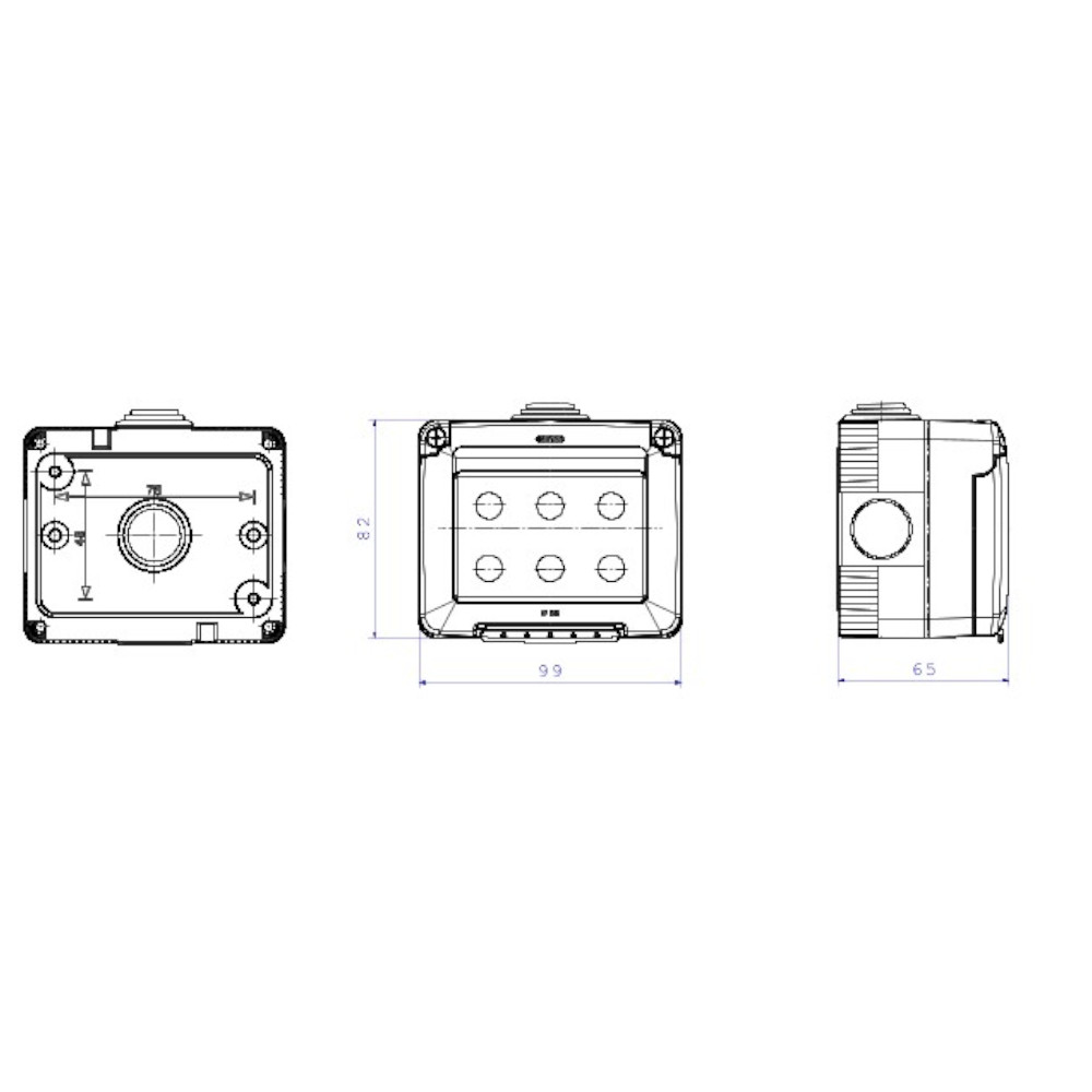 Contenitore 3 moduli scatola stagna IP55 Gewiss. Adatto per l’installazione esterna di tutti i frutti della serie System. Protegge da polvere e getti d’acqua gli interruttori e prese con coperchio chiuso.