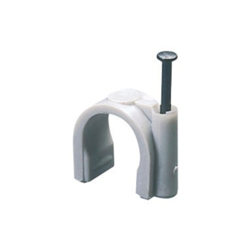 Graffetta in polimero antiurto con chiodo in acciaio misura 3-4 mm. Utilizzata per il fissaggio di cavi elettrici, cavi Tv e telefonici.