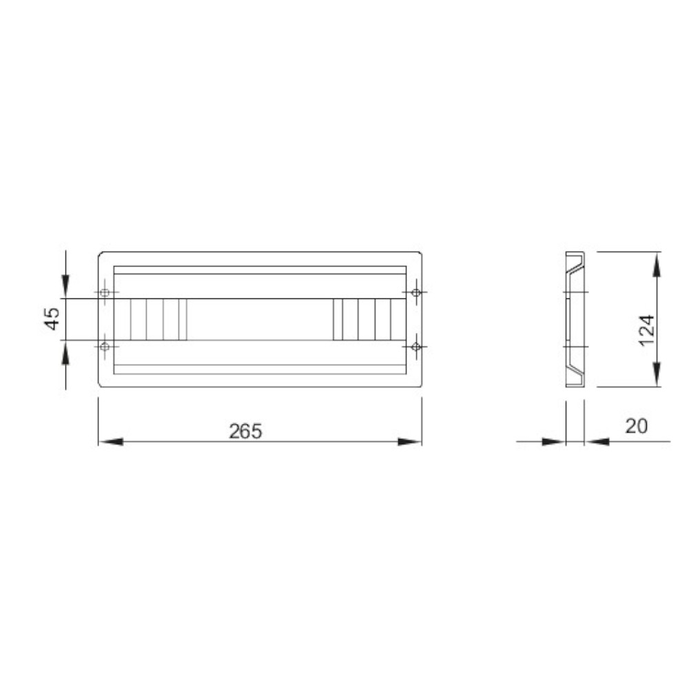 Pannello finestrato per interruttori modulari per quadri di distribuzione base 310mm. Il pannello ha altezza 1 modulo larghezza 12 moduli.