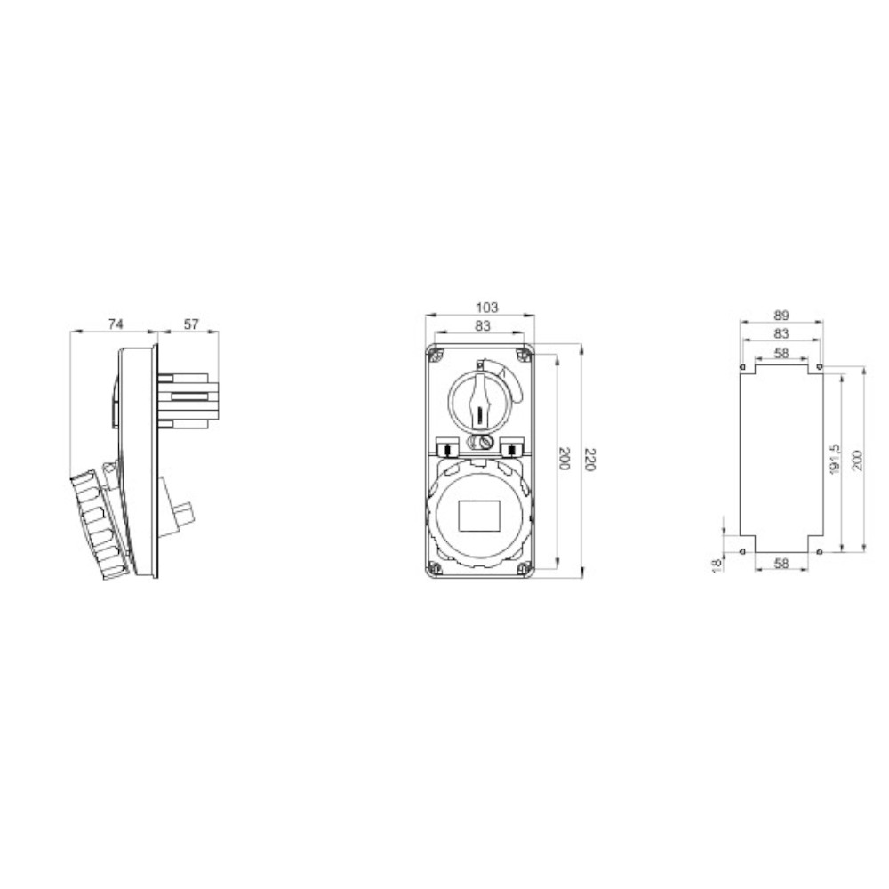 Presa interbloccata 2P+T da 16A 200-250V con base portafusibili 10,3x38mm IP67. La presa è priva di cassetta di montaggio acquistabile separatamente con codice GW66678N. Utilizzata per la connessione alla rete elettrica di utensili e macchine industriali.