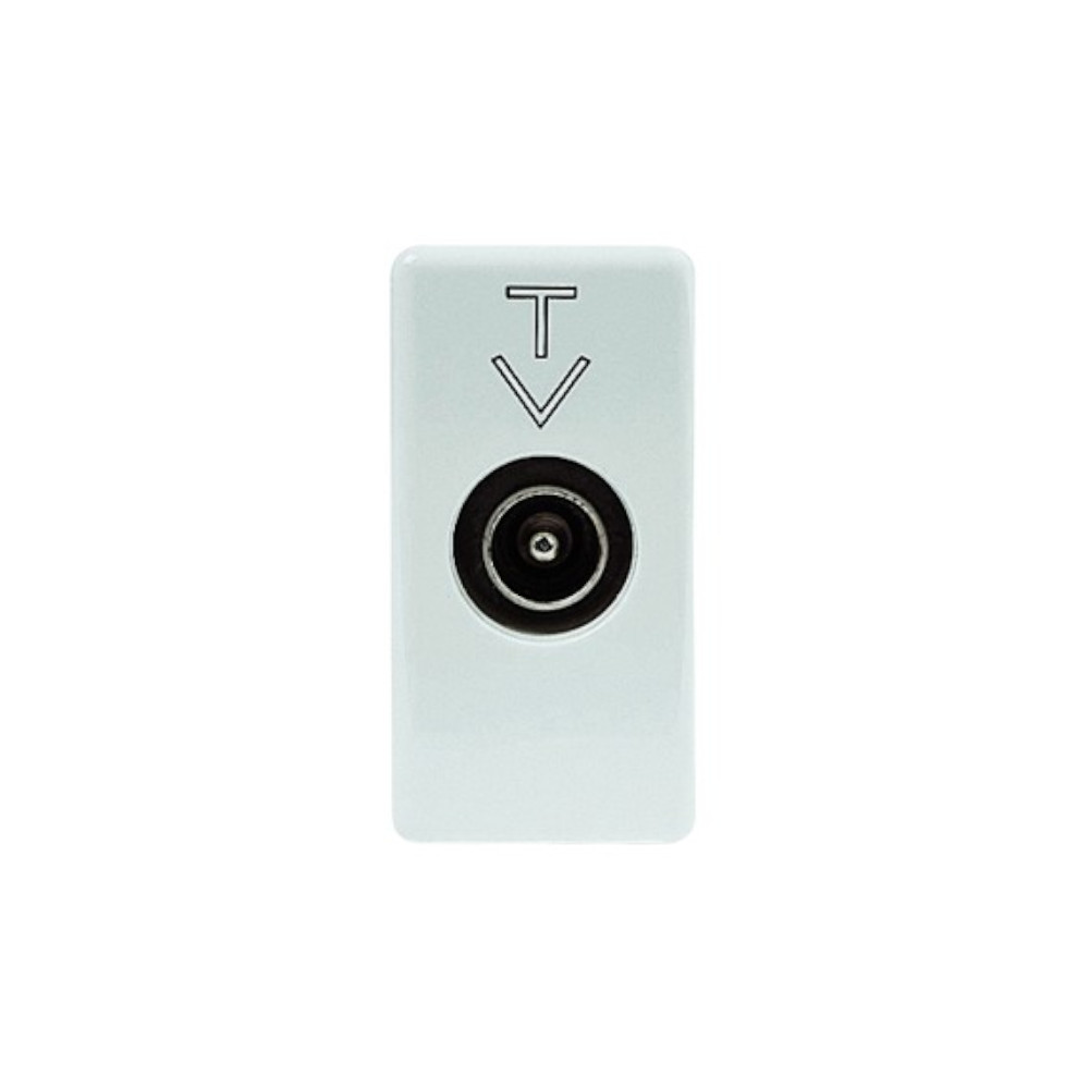 Presa Tv diretta di Gewiss System bianca per digitale terrestre e satellitare. Utilizzata per il collegamento di televisioni o decoder terrestri. La presa TV diretta va installata come ultima presa dell’impianto. Schermatura classe A connettore maschio 5db.