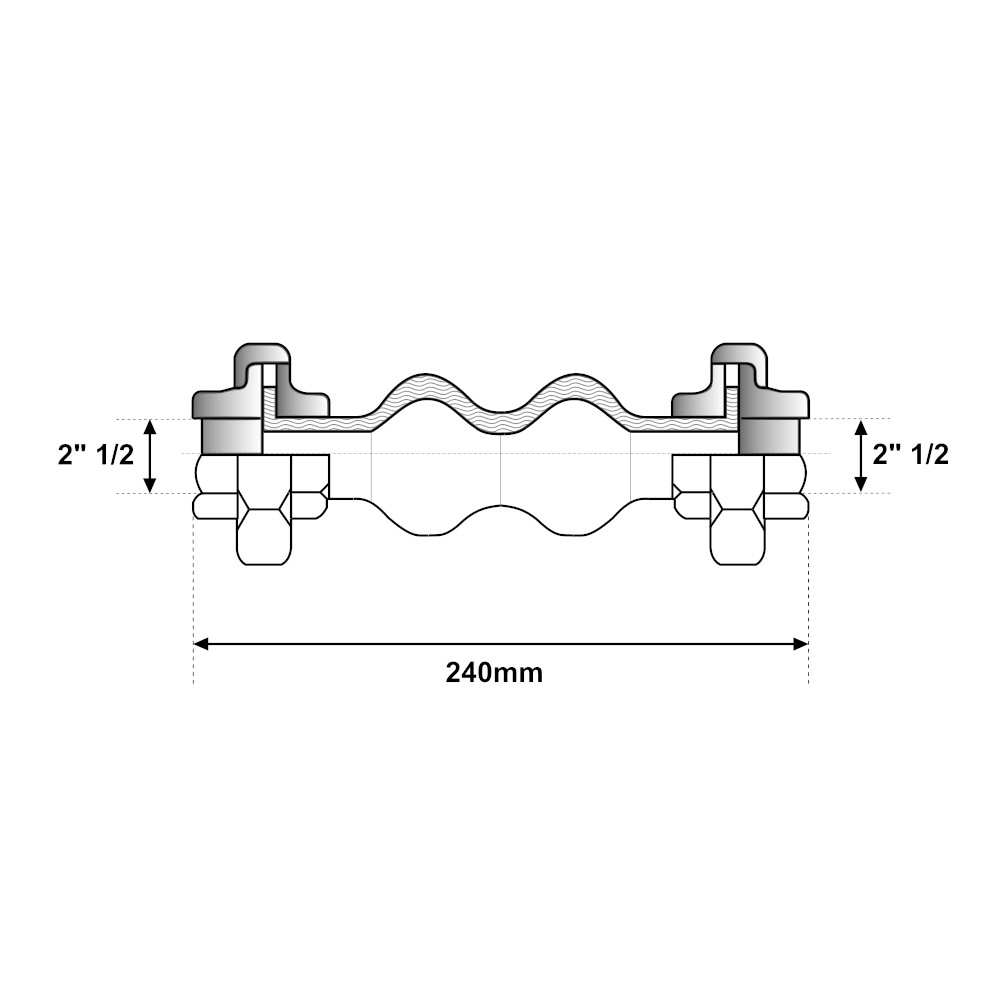 Giunto elastico in gomma antivibrante Ø 2″ 1/2, adatto a proteggere gli impianti idrici dai movimenti di compressione, dilatazione e disallineamento delle tubazioni. Il raccordo di giunzione è pensato per salvaguardare gli impianti, difatti grazie alla sua giunzione elastica sostiene e mitiga eventuali sollecitazioni alle tubature. Il giunto è la scelta adatta per effettuare il collegamento di due tubature in impianti di trasporto d’acqua sia fredda che calda. Idoneo inoltre al trasporto di acqua potabile. La giunzione è lunga 240mm e si presenta con due attacchi filettati femmina alle estremità da 2″ 1/2. Il manicotto antivibrante è realizzato in ghisa zincata, un materiale eccellente per la realizzazione di circuiti di trasporto d’acqua. Infatti la ghisa è in grado di garantire un alta resistenza meccanica ed un’elevata durata nel tempo. Per di più il trattamento zincato assicura un’elevata resistenza alla corrosione ed agli agenti chimici. Mentre la membrana di giunzione elastica è realizzata in neoprene, un materiale noto per le sua elevate qualità elastiche. Grazie alla sua resistenza ed alla sua semplicità di montaggio il giunto elastico è la scelta perfetta per il vostro impianto. Il raccordo anti vibrazioni è disponibile in varie misure.