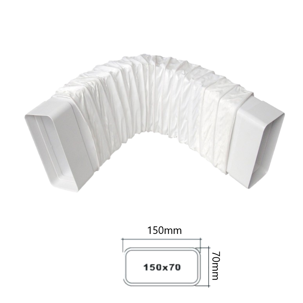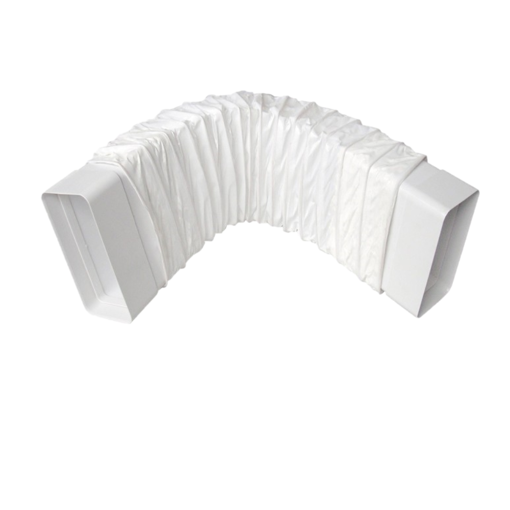 Giunto flessibile per tubo di areazione bianco rettangolare. Accessorio che garantisce l’installazione anche in situazioni scomode. Estensione massima 60cm. Questa tubazione permette la corretta evacuazione di vapori e odori sgradevoli da ambienti, favorendo un corretto cambio d’aria. Da notare il suo principale utilizzo su cappa domestica o su sistemi di aspirazione aria in ambienti particolarmente umidi come i bagni.