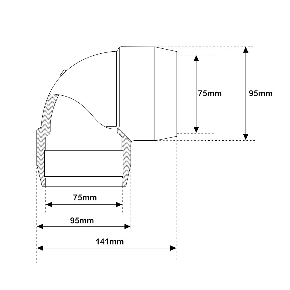 Gomito 90° Ø75 elettrosaldabile Acqua e Gas Fusion