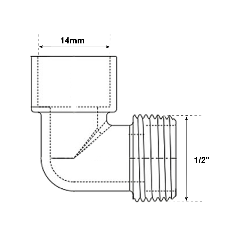 Il gomito a saldare presenta un attacco maschio filettato da pollice 1/2″ ed un attacco femmina da diametro Ø14mm. Il raccordo ad angolo è realizzato in bronzo al silicio, il quale materiale evita qualsiasi dispersione di piombo nell’acqua. Il gomito è strutturato da una superficie liscia e pulita, la quale garantisce un’elevata resistenza alla corrosione e agli agenti atmosferici. Il raccordo può essere saldato con stagno oppure brasato con lega saldante e relativo flussante. Il raccordo a saldare sopporta una temperatura d’esercizio di 110°C e una pressione fino a 40 Bar.