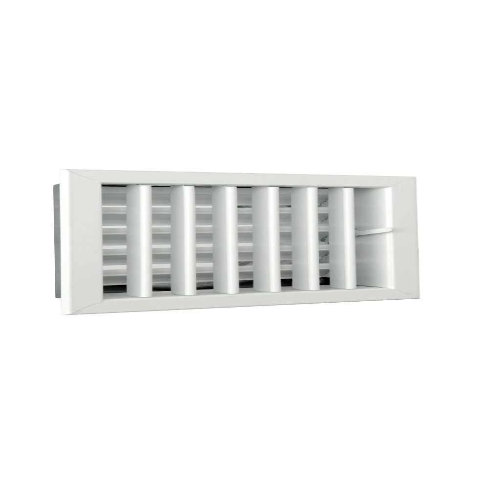 La griglia di areazione ad incasso con serranda in alluminio verniciato bianco con alette mobili per caminetti, di forma rettangolare è misura 400mm x 130mm per un foro da 372mm x 103mm. La griglia di aereazione è utilizzata generalmente per gli impianti di riscaldamento e ricircolo d’aria, serve per garantire la regolazione della portata d’aria. Composta da alette mobili in alluminio anodizzato, con una serranda di regolazione flusso d’aria in alluminio anodizzato per la mandata e ripresa aria. Le alette consentono una chiusura totale della bocchetta, consentendo una regolazione fine della portata d’aria. Infine sfrutta un sistema ad incasso, facile da installare e semplicissimo da mettere in collegamento con l’impianto di areazione.