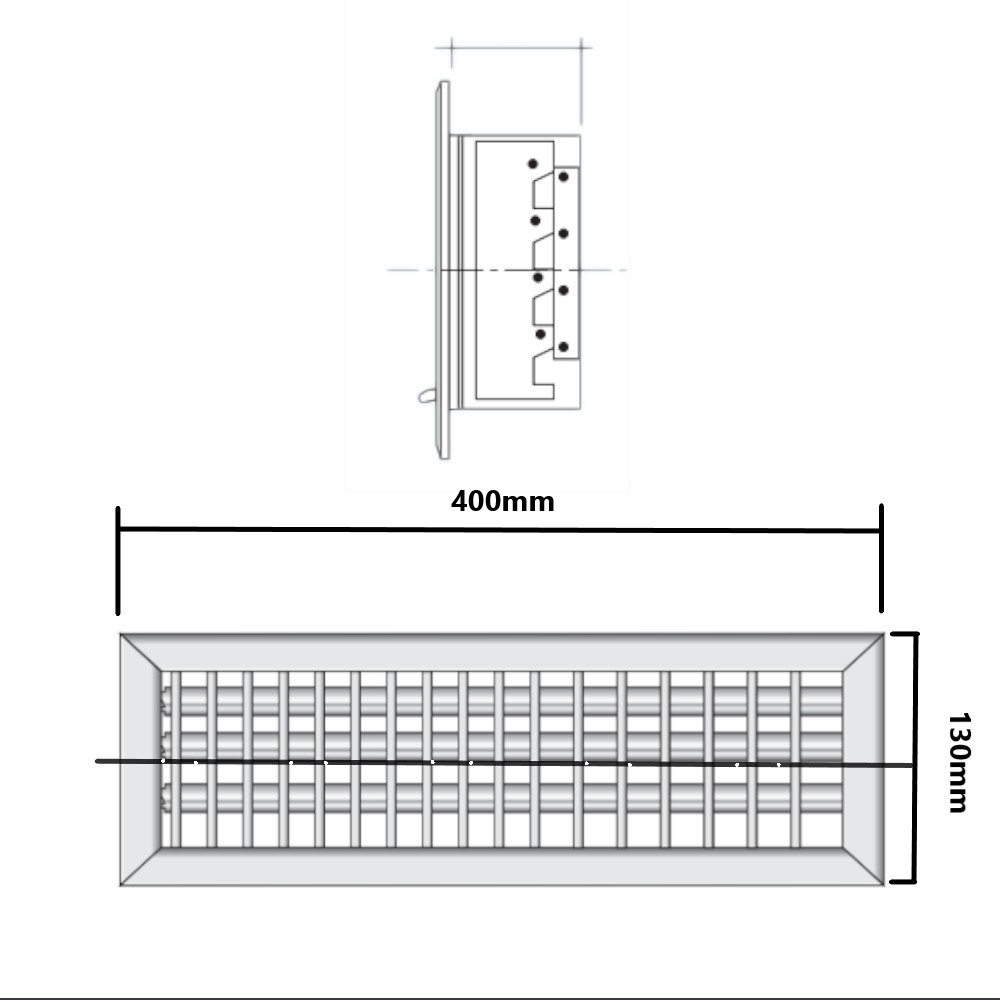 Griglia incasso con serranda 400mm x 130mm Bianca