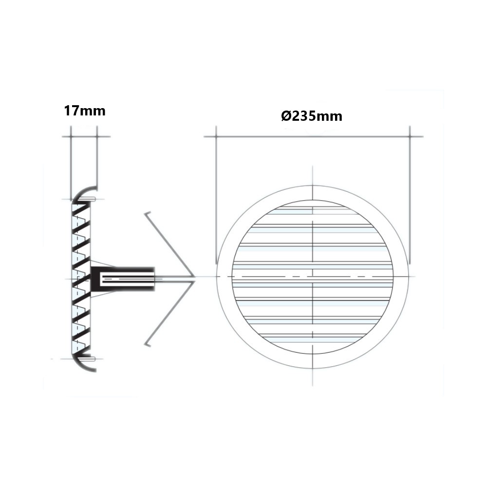 Griglia circolare in plastica che permette il ricircolo di aria tra gli ambienti dall’interno all’esterno delle abitazioni, limitando così la formazione di muffa e condensa. Questa particolare griglia utilizza il sistema a molle per il fissaggio, in modo tale da potersi adattare a qualsiasi diametro. E’, inoltre, provvista di retina così da non permettere il passaggio agli insetti. Si presenta in ABS color rame e risulta altamente resistente all’invecchiamento, anche esposta ad agenti atmosferici particolari. Ø 235.