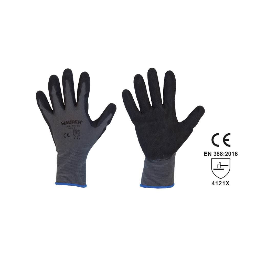 I guanti in filo continuo nylon nitrofit Maurer proteggono le mani durante lavori che comportano rischi meccanici come abrasione, tagli, strappi e perforazioni.