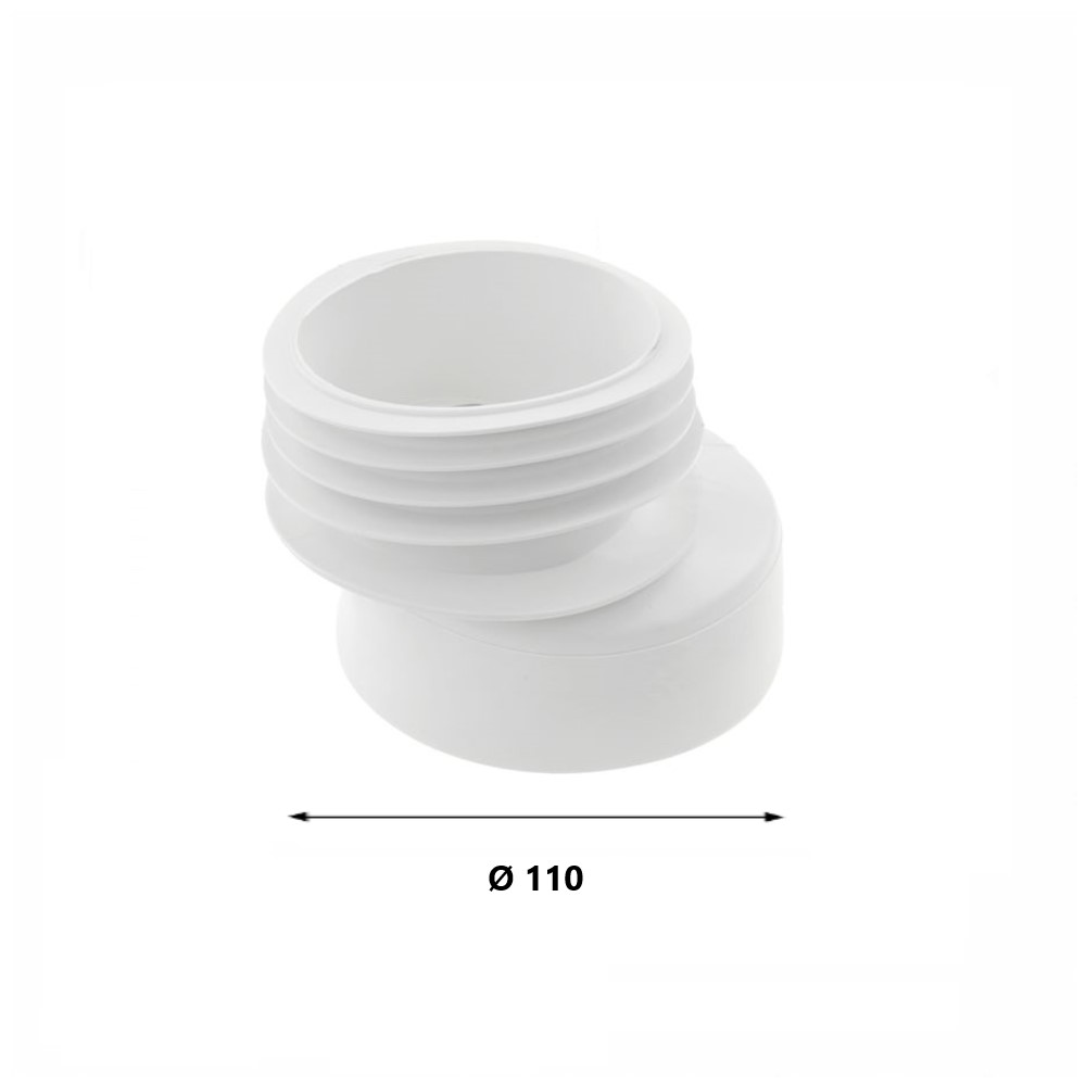 Manicotto di collegamento WC eccentrico elastico ∅ 110 mm. In PVC elastico per una vestibilità perfetta. Adatto per regolare l’uscita del gabinetto alla tubazione fissa della casa. La sua forma eccentrica consente al bracciale di muoversi di alcuni cm per un migliore adattamento. Misure (diametro x altezza): 110 x 100 mm.