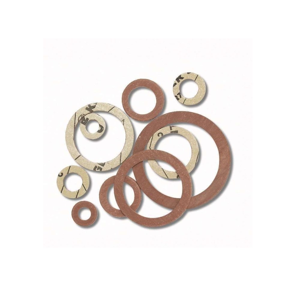 Guarnizione in esente amianto Klinger per raccordi ottone-acqua-gas metano ecc. Spessore 2 mm. Materiale klinger a base di fibre sintetiche. Ø 3/8″.
