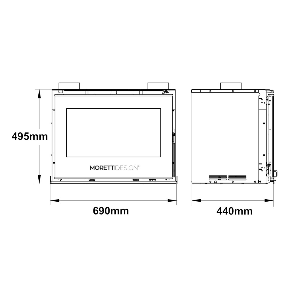 L’inserto a legna Slot Wood Flat 49 Nero della Moretti Design è facile da installare e utilizzare, grazie a un design studiato per adattarsi facilmente a diversi tipi di camini. Ha due ventilatori per la produzione di aria calda per velocizzare il riscaldamento e, la possibilità di dirigere l’ aria calda in alto o frontalmente grazie ad una struttura meccanica. La qualità dei materiali e la cura dei dettagli assicurano durabilità e affidabilità nel lungo periodo. È realizzato con una struttura in acciaio, mentre l’interno della camera di combustione è in Firewall, un rivestimento di vermiculite, materiale isolante, e mattoni refrattari.
