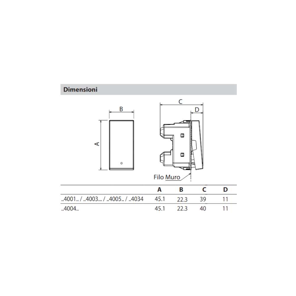 Il dispositivo ha indice da penetrazione da corpi solidi o liquidi IP40, una custodia in policarbonato inoltre l’indice da prova d’urto è pari a IK04. Si consiglia di pulire la superficie con un panno, senza usare acetone, smacchiatori o tricloroetilene. Inoltre è consigliabile verificare sempre l’utilizzo di prodotti speciali per la pulizia del dispositivo.