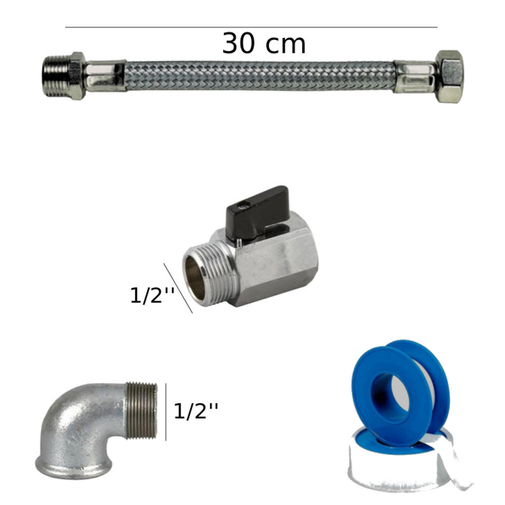 Il kit in questione include 4 articoli indispensabili per l’installazione centrale di cassette scarico per wc come le Kariba e altre marche.
