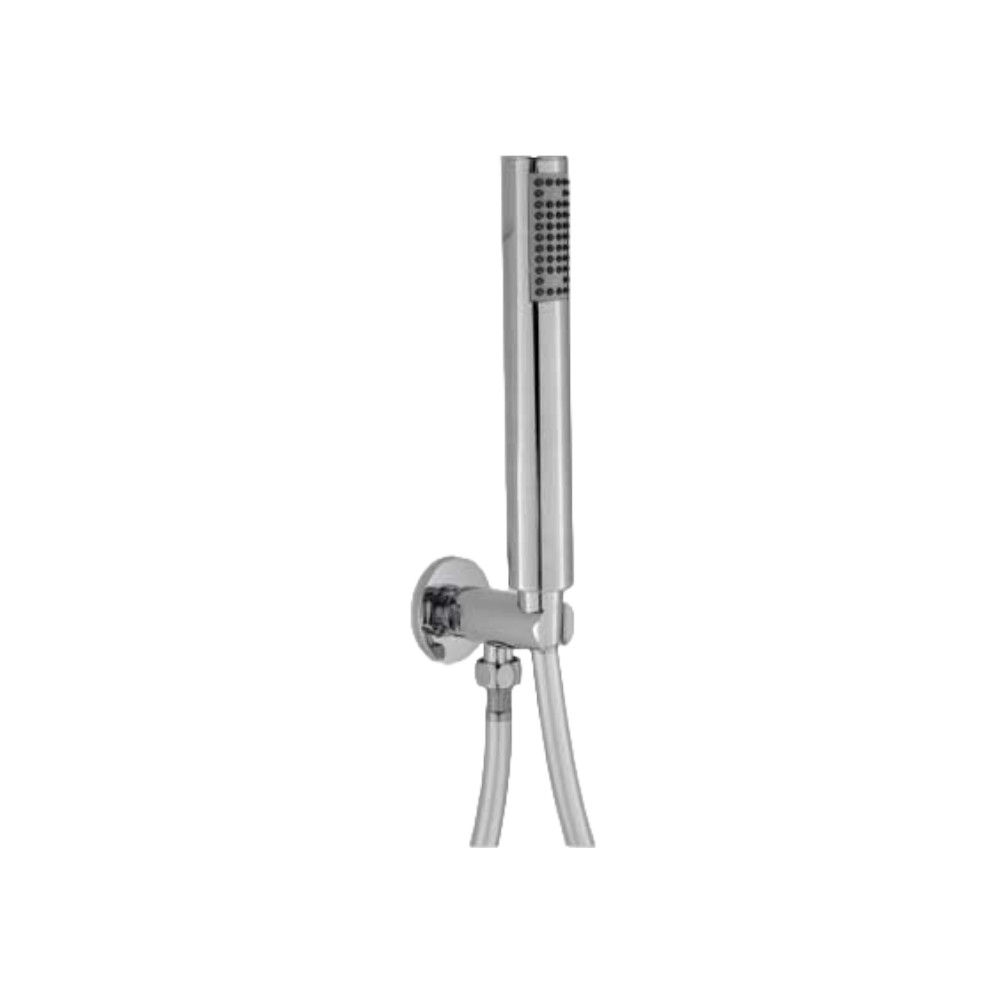 È composto da una presa d’acqua tonda, una doccetta, un supporto per doccetta e un tubo flessibile doccia in ottone a doppia aggraffatura, lungo 150cm. È realizzato in plastica ABS resistente con finitura cromata lucida, che garantisce leggerezza, durata e un aspetto elegante nel tempo. Il design è moderno e tondeggiante, con una elegante finitura cromata che valorizza l’ambiente doccia.