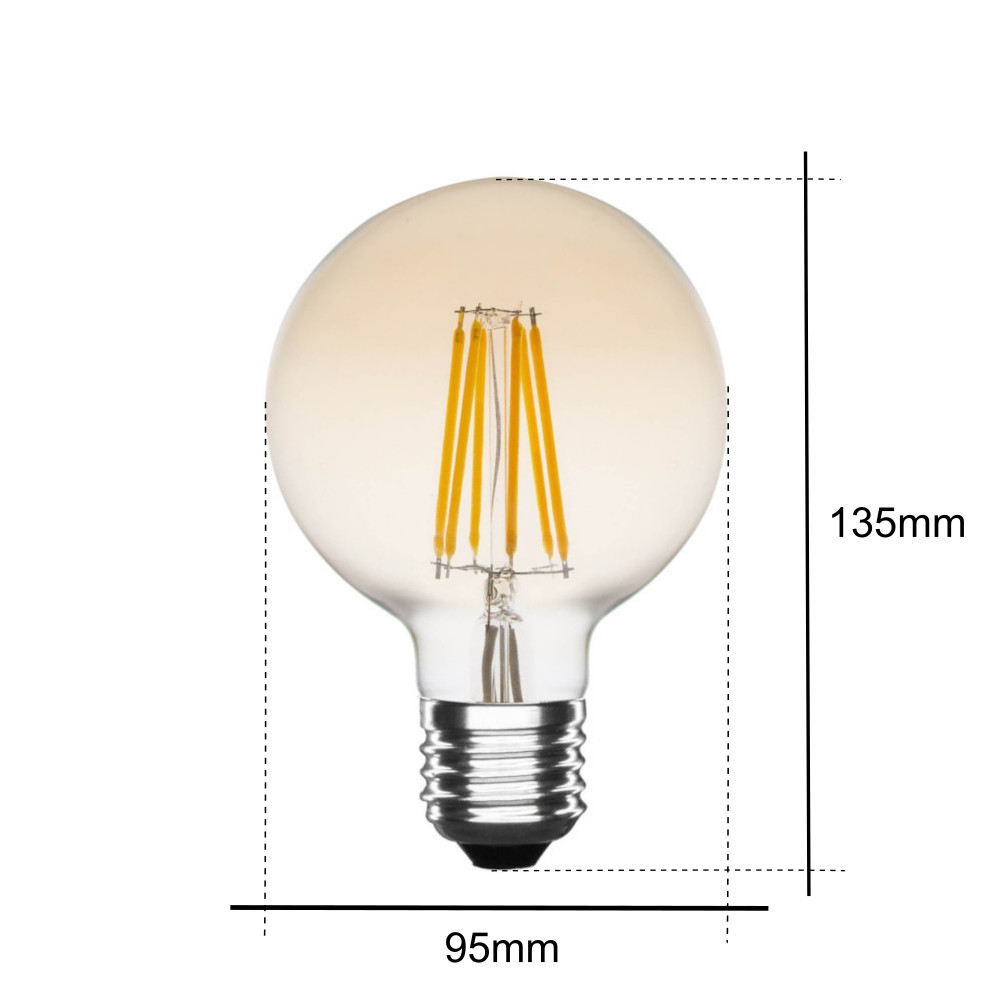 Lampadina LED filamento E27 8W a globo ambrata