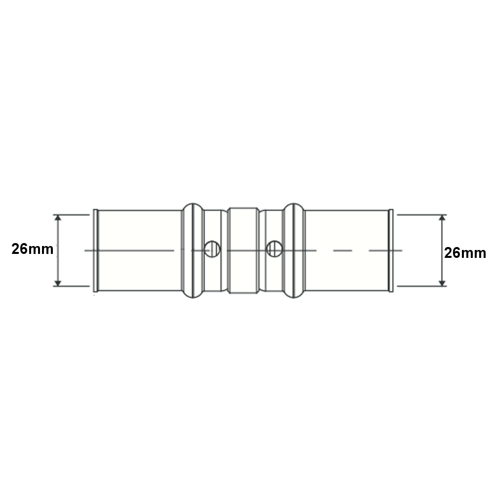 Il manicotto intermedio multistrato a pressare acqua è utilizzato per la realizzazione di impianti idrosanitari, impianti di riscaldamento ad alta temperatura, impianti di riscaldamento e raffrescamento a pavimento. Il manicotto multistrato presenta due attacchi femmina con diametro Ø26mm. Inoltre il raccordo intermedio, sfrutta l’utilizzo di tubature multistrato con spessore di 3mm.