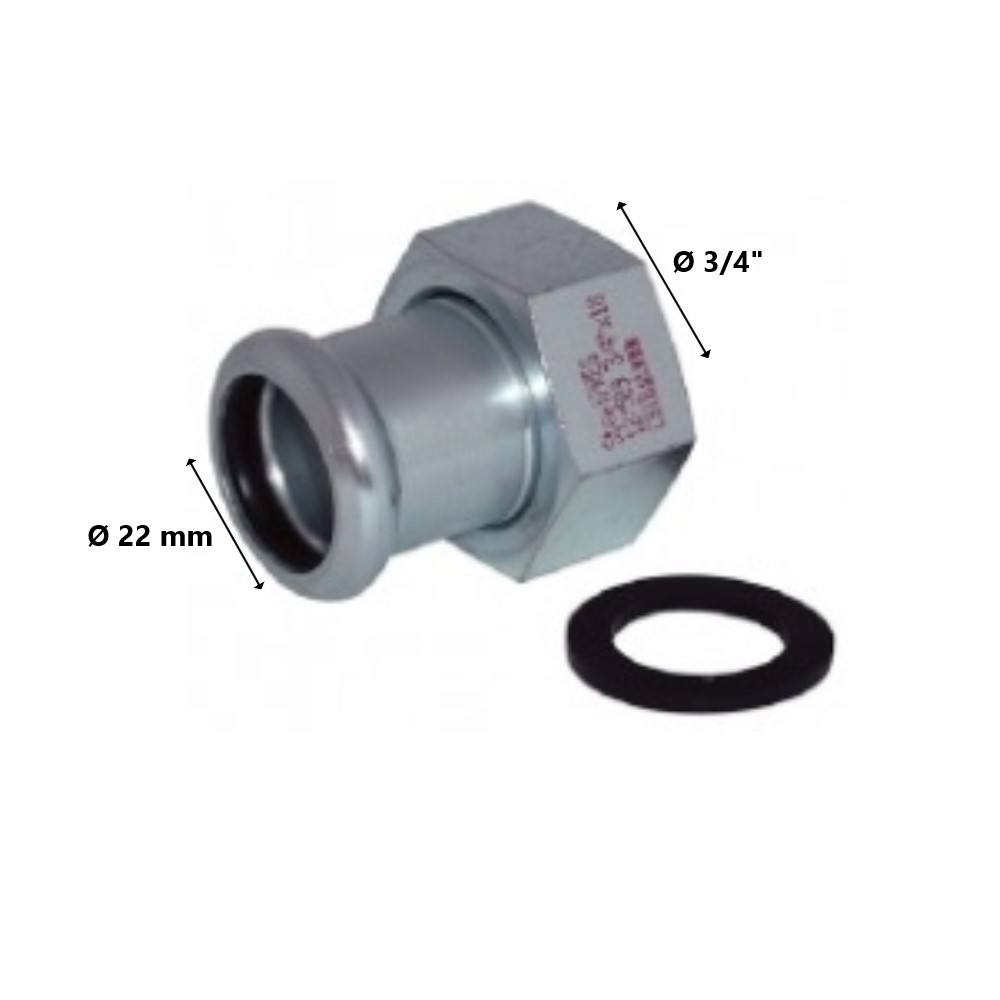 Manicotto con dado folle Ø 22mm x 3/4″ F Steel