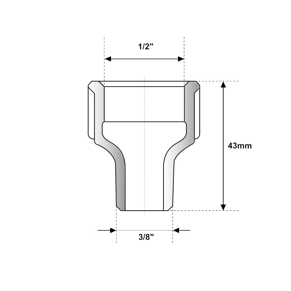 Il manicotto ridotto presenta un attacco maschio da pollice 3/8″mm ed un attacco femmina da pollice 1/2″mm. Inoltre ha un’altezza di 43mm. Il raccordo di riduzione è realizzato in ghisa zincata di alta qualità, ideale per la realizzazione di circuiti idrici e impianti a gas. Difatti la ghisa è in grado di garantire un alta resistenza meccanica. Per di più il trattamento zincato assicura un’elevata resistenza alla corrosione ed agli agenti chimici, garantendo un prodotto funzionale e duraturo nel tempo. La sua installazione risulta facile e veloce.  Il manicotto ridotto è disponibile in varie misure. Per ulteriori informazioni consultare il documento in allegato.
