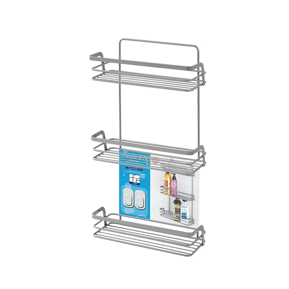 Mensola doccia rettangolare a 3 ripiani in metallo
