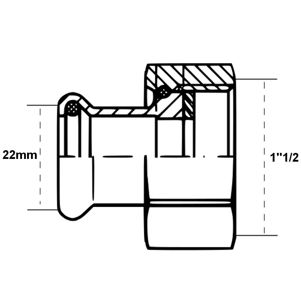 Mezzo Bocchettone A Pressione Per Tubo Rame FF Ø1”1/2-22mm HT