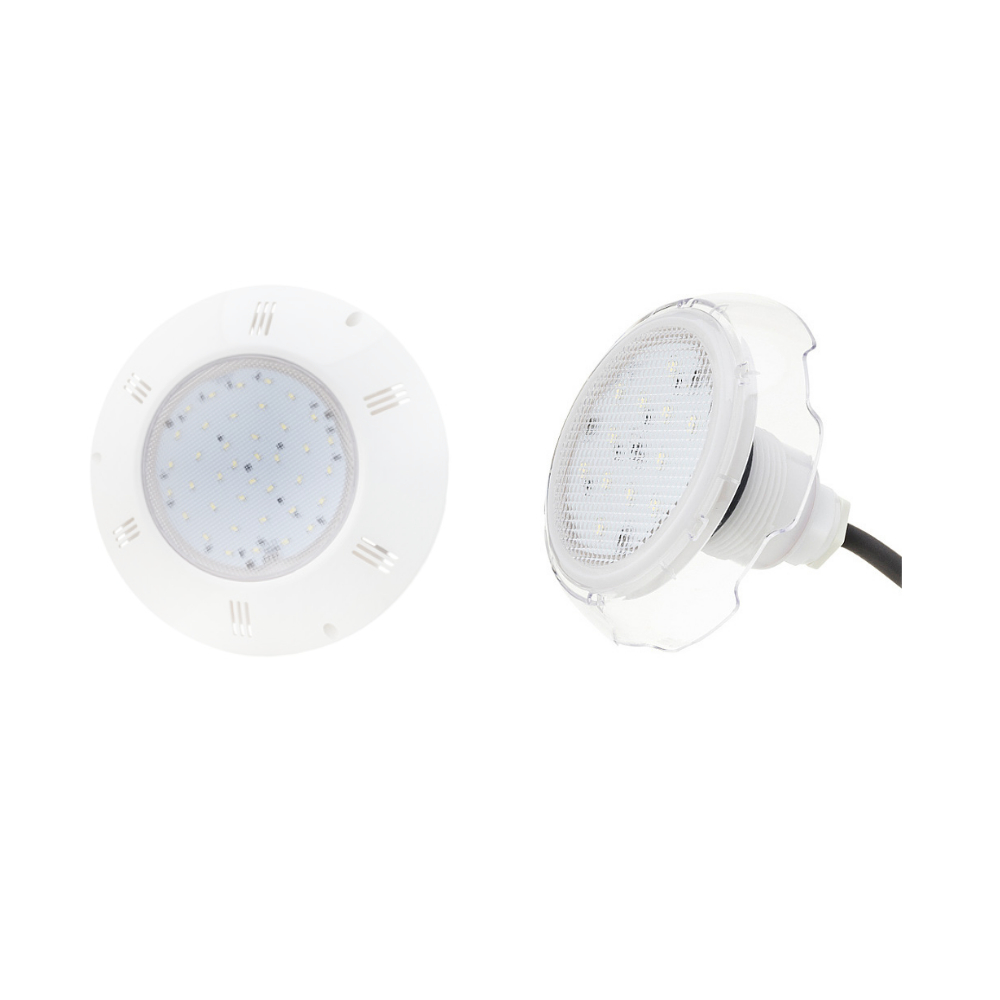 Il componente luminoso è realizzato in policarbonato e ABS, entrambi materiali noti per la loro particolare resistenza a urti, calore ed agenti chimici dei prodotti per il trattamento dell’acqua. Presenta un grado di protezione IP68, grazie al quale è possibile l’utilizzo sommerso fino ad 1 metro di profondità.